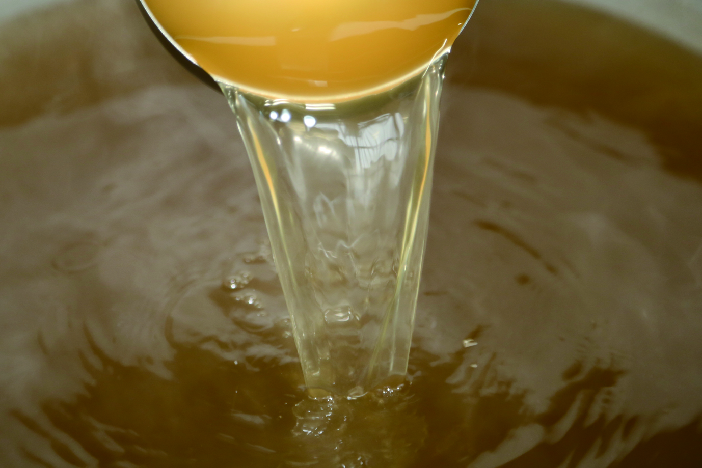 手間を惜しまず、昆布、椎茸、さば節、うるめ節、かつお節からていねいに取った黄金のつゆは、資さんの味の決め手です。
