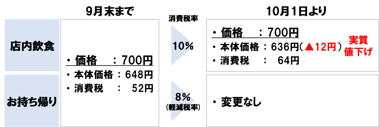 消費税増税への対応として、店内飲食すべての商品価格を実質値下げし、店内飲食・持ち帰りの税込価格を統一します!
