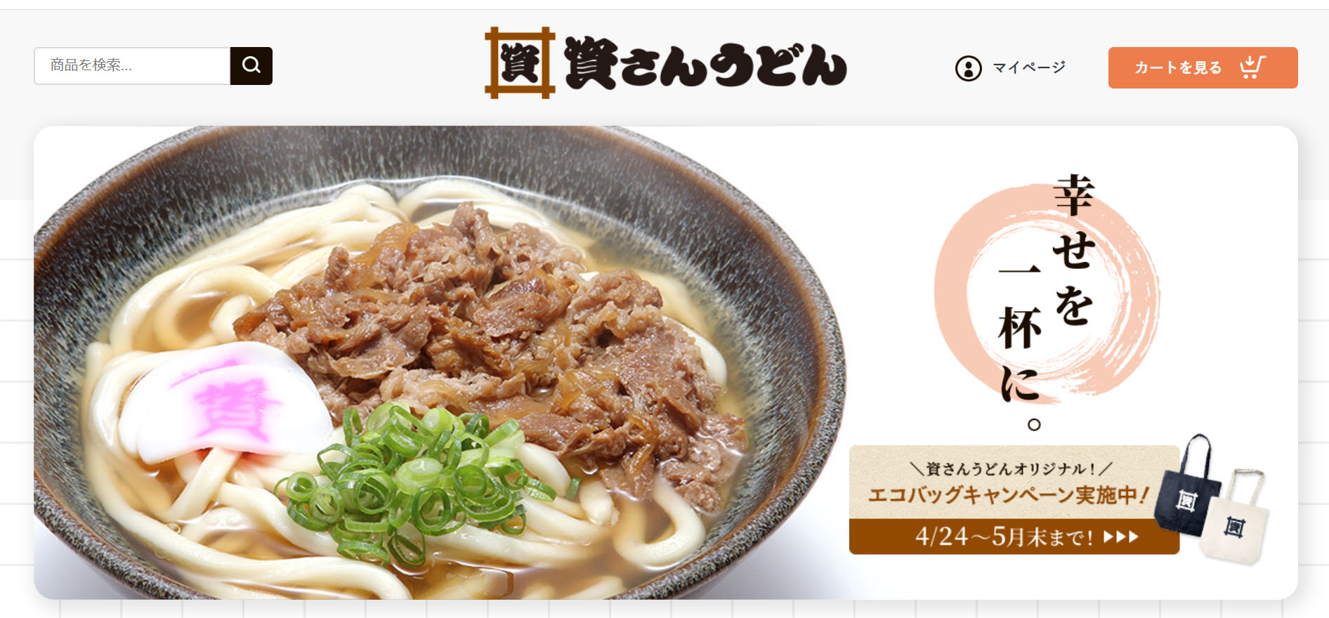 資さんうどん公式通販サイト「資さんストア」オープン‼オープン特典として、5月末までの期間限定で、対象商品ご購入のお客さまに資さんオリジナルエコバッグプレゼント実施中‼