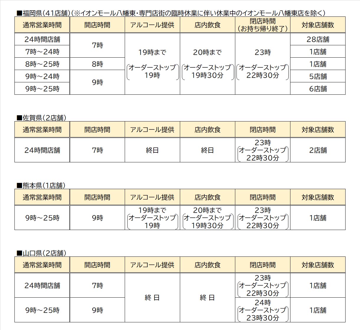 【お知らせ】5月8日(金)~佐賀県内2店舗の営業時間変更いたします