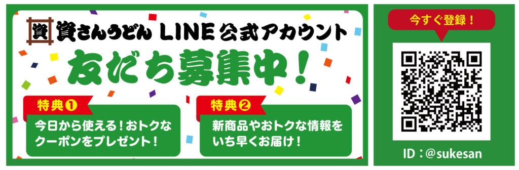 資さんうどん「LINE公式アカウント」友だち募集中!!