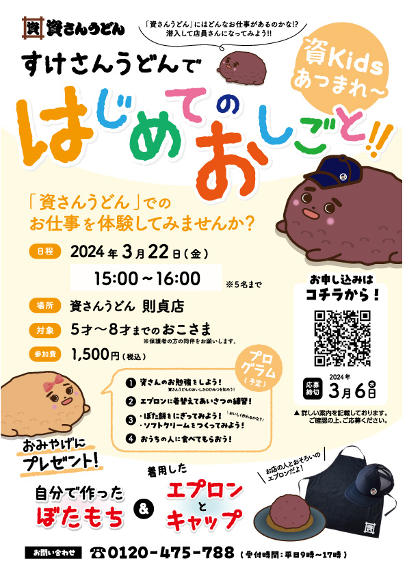 3/22(金)「資さんうどん」店舗で「はじめてのおしごと」開催します!!