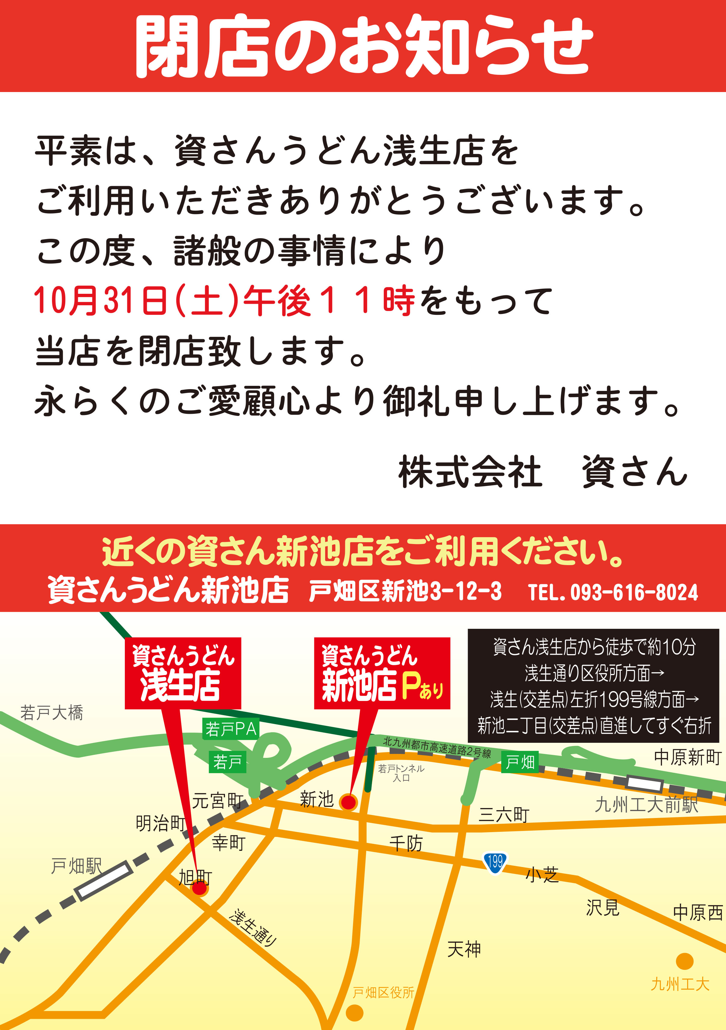 - 浅生店閉店のお知らせ
