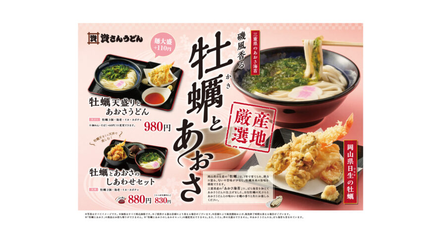 3/6(水)〜「牡蠣天盛りとあおさうどん」を販売します!